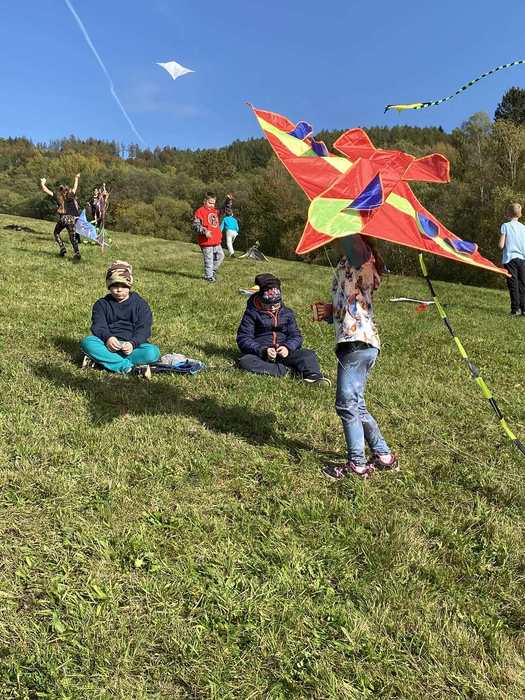 V pátek 18.10. jsme se vydali s dětmi na nedaleký kopec pouštět draky. Počasí nám přálo, vítr pofukoval a všechny draky se nám povedlo dostat do povětří. Nejlepší letce jsme ocenili diplomy a drobnými sladkostmi.
