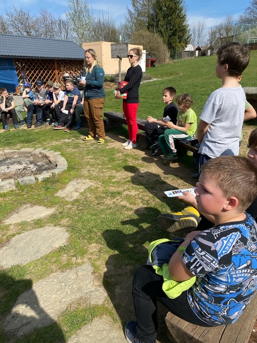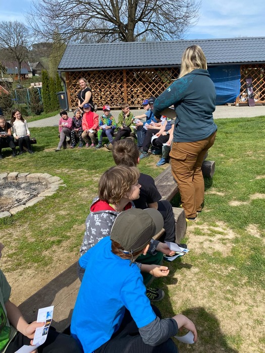 Pondělí většinou nemáme rádi, ale toto pondělí 14. dubna jsme si zpříjemnili a vydali se s naší družinou na výlet do ekocentra Mladoňov. V Mladoňově nás přivítali David, Pája, Dita a Sanny (krásný chundelatý pejsek, který nás celou dobu pozoroval a doprovázel při všech úkolech). Hráli jsme lístečkovou hru Náhoda, ve které jsme si připomněli živly a našim úkolem bylo házet kostkou a nasbírat body. Další hrou byla hra Bacil – tohle nás opravdu bavilo! Bacilové měli za úkol nakazit co nejvíce zdravých dětí. Kolíčkovaná byla naší poslední hrou – cílem bylo za pohybu vzít kamarádovi kolíčky a vyhrával ten, co jich měl nejvíce. Celé odpoledne jsme strávili na sluníčku a užili jsme si krásný jarní den se spoustou her!