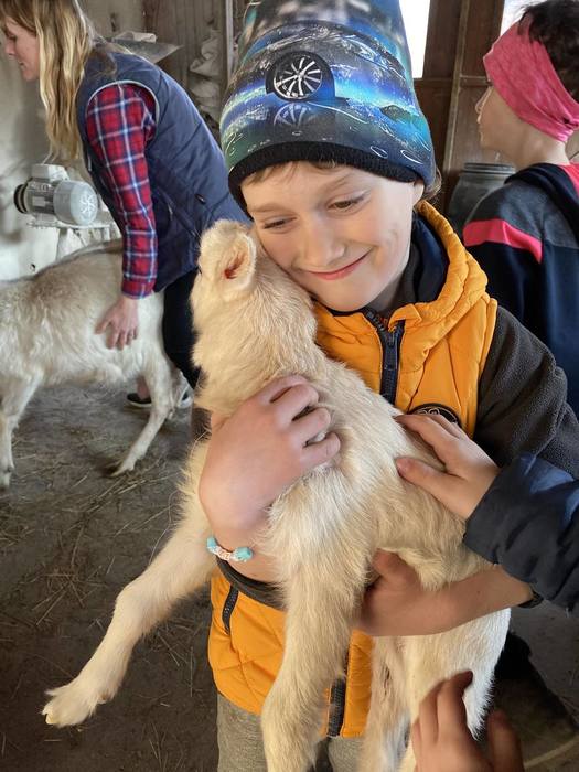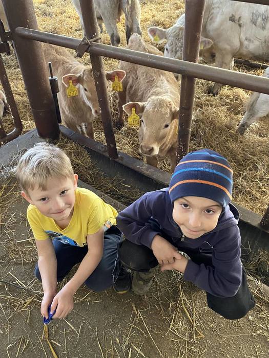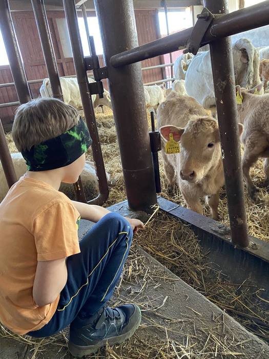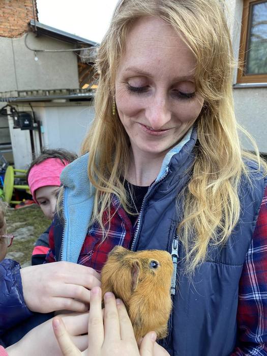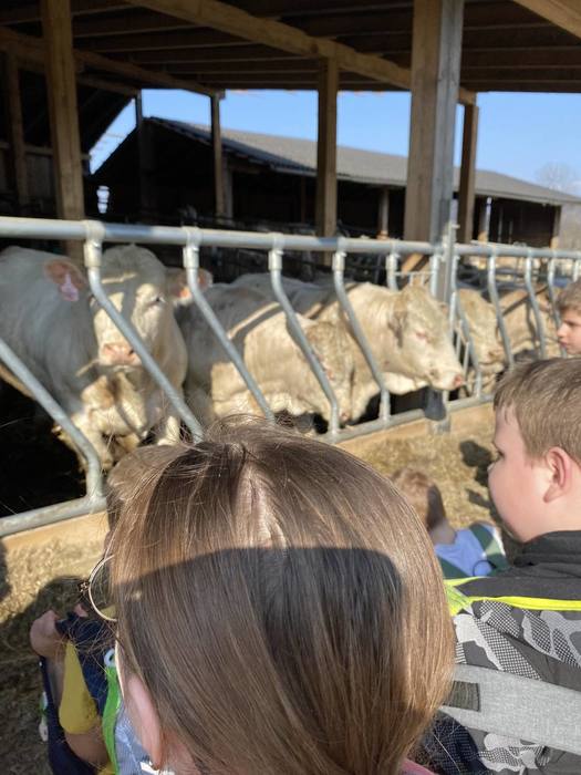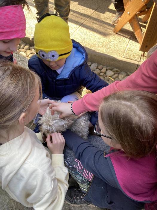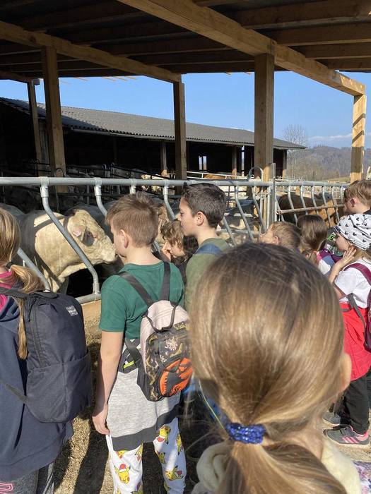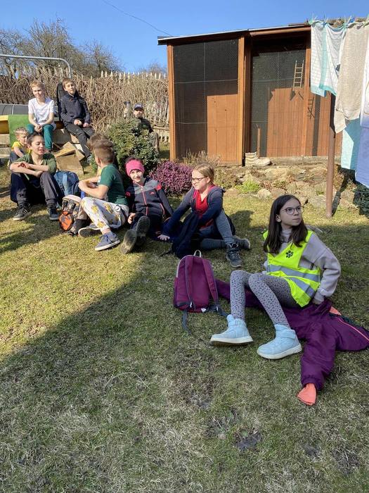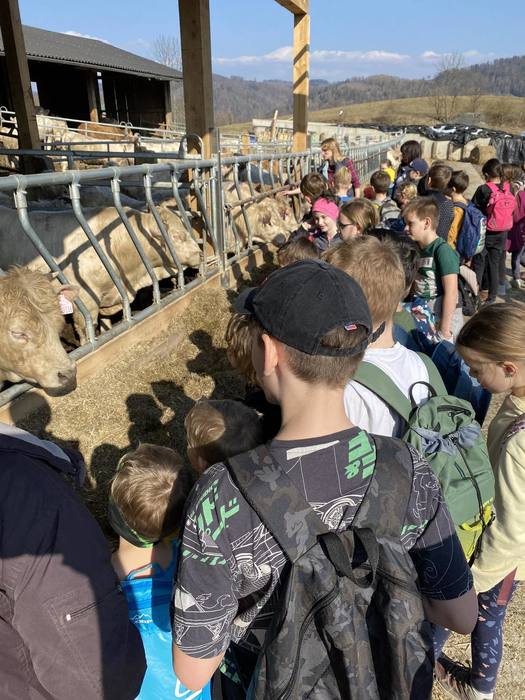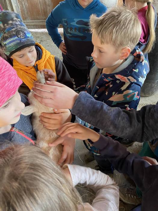 První jarní den 21. března jsme se s naší školní družinou vydali na vycházku do Komňátky na farmu k Divišům. Paní učitelka Štěpánka nás provedla jejich rodinnou farmou. Děti si prohlédly venkovní i vnitřní ustájení krav, telat a býků, viděly kozí rodinku a měly možnost si pohladit čerstvě narozené jednodenní kůzle. Také jsme se pomazlili s morčátky a pejsky. Počasí bylo nádherné, výlet se nám vydařil a společně prožité odpoledne jsme si náramně užili.