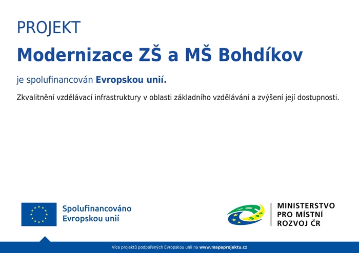 účel dotace: Zkvalitnění vzdělávací infrastruktury v oblasti základního vzdělávání a zvýšení její dostupnosti.