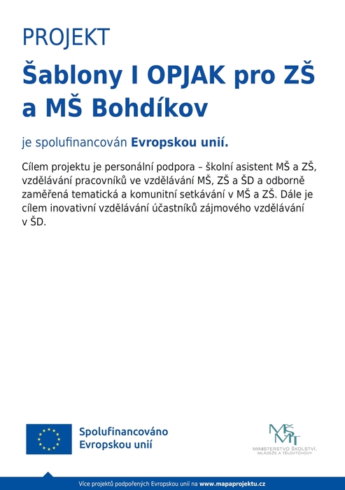 Šablony I OPJAK pro ZŠ a MŠ Bohdíkov